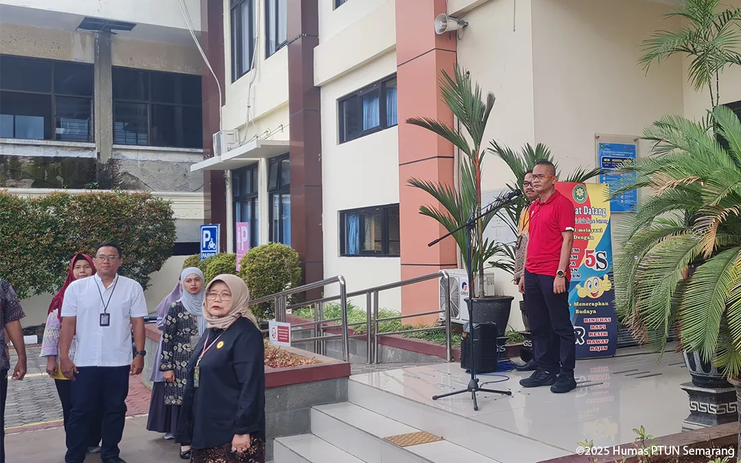 Seluruh aparatur Pengadilan Tata Usaha Negara (PTUN) Semarang melaksanakan apel sore di halaman kantor PTUN Semarang sebagai penutup kegiatan kerja di akhir pekan. Pada kesempatan kali ini, Hakim PTUN Semarang, Bapak Josiano Leo Haliwela, S.H., bertindak sebagai Pembina Apel.