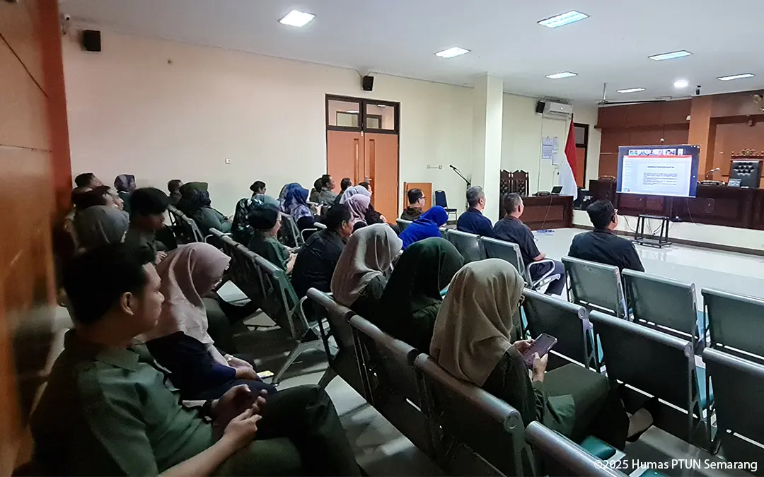 Kegiatan yang dilaksanakan secara daring ini berlangsung di Ruang Sidang Cakra PTUN Semarang, dengan penuh semangat kebersamaan dan komitmen dalam meningkatkan kualitas pelayanan peradilan.