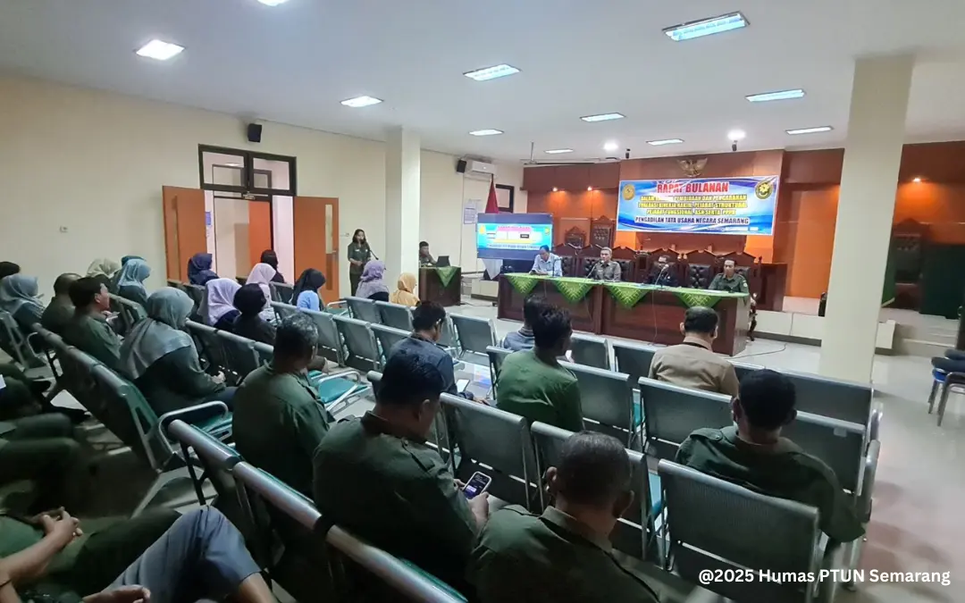 Semarang, 28 Januari 2026 – Mengawali langkah di tahun yang baru, PTUN Semarang menyelenggarakan Rapat Rutin Bulanan bertempat di Ruang Cakra. Rapat dipimpin langsung oleh jajaran pimpinan dan diikuti oleh seluruh hakim serta aparatur sipil negara.
